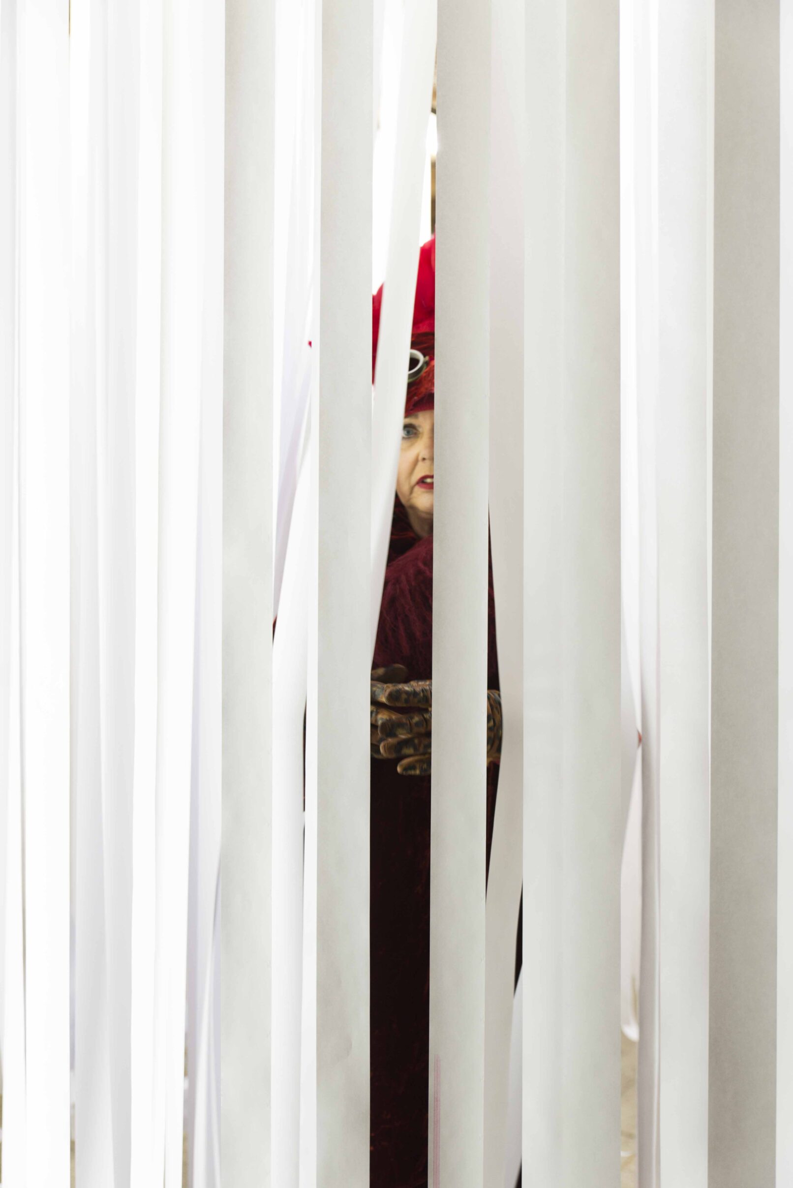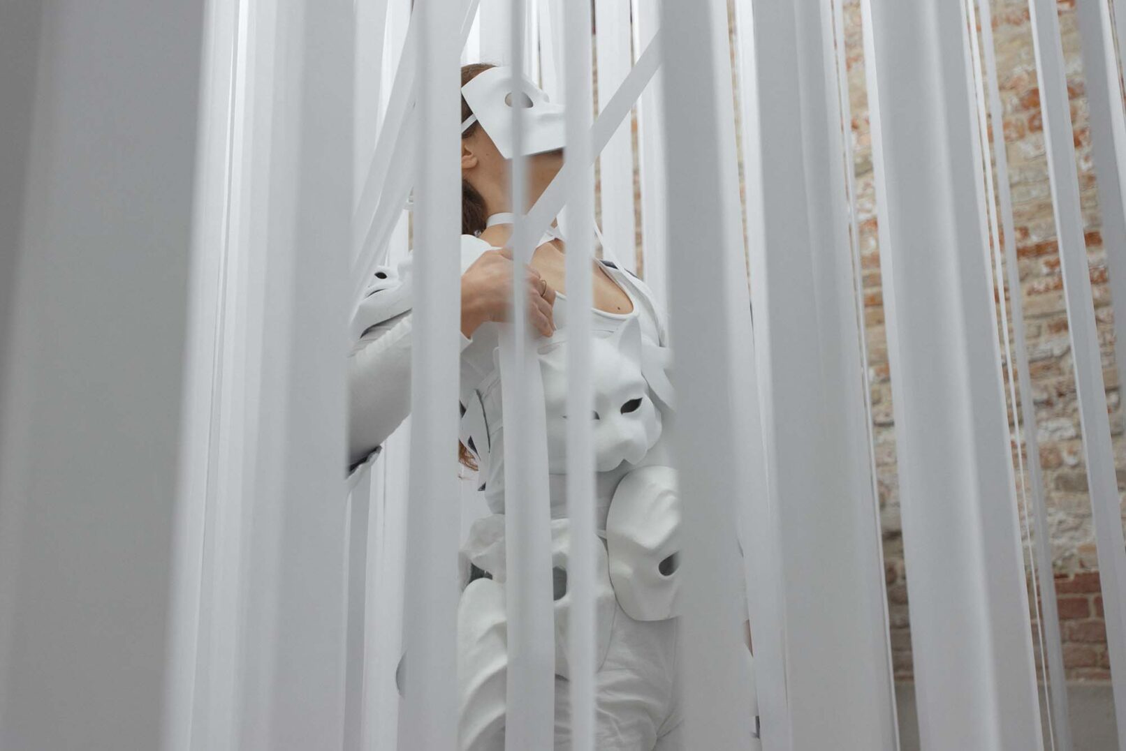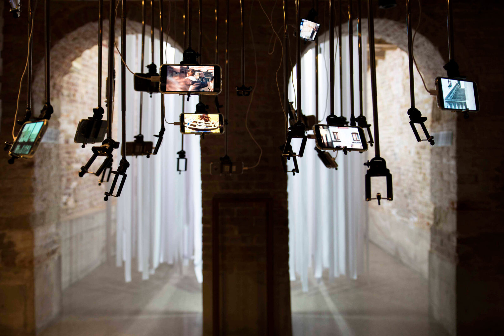 The installation presents itself to visitors as a crowded, cluttered, concentrated place, through which they will physically have to make space and free themselves from a figurative indistinct mass.