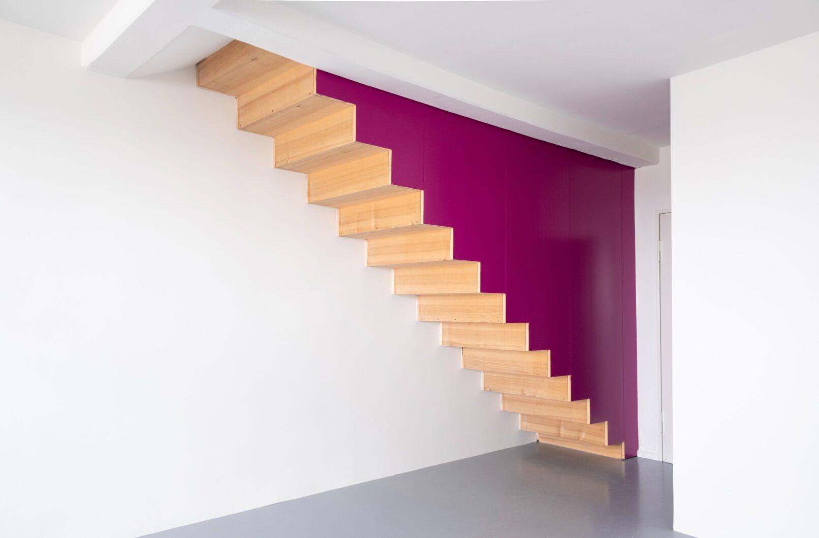 We chose the colours from the palettes designed by Le Corbusier for the building, the wood of the steps is oiled ash.